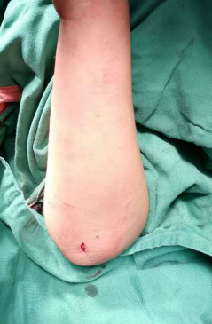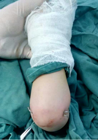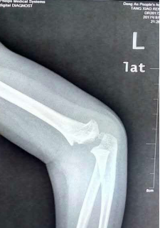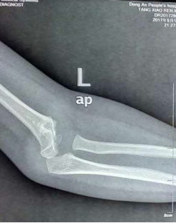 3歲男性患兒,暑假在家里玩耍時,不小心摔傷致左肱骨髁上粉碎性骨折。父母立即帶患兒到當?shù)蒯t(yī)院就醫(yī),手法復位石膏外固定,但骨折位置仍較差,醫(yī)生建議手術治療。父母十分緊張,擔心開刀會留疤,不好看。當?shù)蒯t(yī)院建議轉(zhuǎn)市中心醫(yī)院?;純菏杖朐汉螅痹汗强贫^(qū)黃軍銘主任率隊討論,為患兒制定嚴密的手術步驟及術前準備,次日即為患兒實施了三維手法閉合復位經(jīng)皮克氏針內(nèi)固定手術。手術非常順利,共用時30多分鐘,術中透視見骨折復位準確,對位對線良好,克氏針位置良好。術后患兒父母懸著的心終于放下,不停地向黃軍銘主任真誠道謝。手術后,患兒恢復很快,術后第3天即辦理了出院手續(xù)。