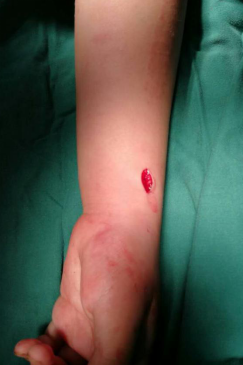 8歲小女孩胡某,暑假外出玩耍時不慎摔倒,在當?shù)蒯t(yī)院拍片診斷為右尺橈骨干雙骨折,當?shù)蒯t(yī)院建議行傳統(tǒng)的切開復位鋼板內(nèi)固定術?;純焊改嘎犝f市中心醫(yī)院可開展微創(chuàng)手術,慕名前來,黃軍銘主任根據(jù)患兒骨折特點,選擇閉合復位彈性髓內(nèi)釘固定。手術中手法復位后,在前臂近端尺側(cè)及遠端橈側(cè)各切開約1cm的小切口,順利置入2枚預先預制好的彈性髓內(nèi)釘。術后復查X片,家長看到手術結(jié)果后非常滿意,握住黃軍銘主任的手表示十分感謝。隔壁的病友們都覺得不可思議,這么小的口子就能將手術做得如此漂亮,紛紛豎起大拇指為醫(yī)生點贊。