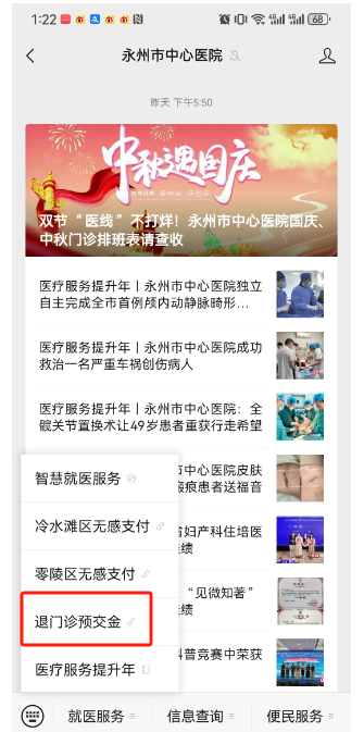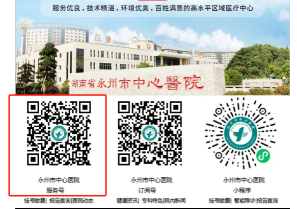 1.微信掃碼(長按識別圖片)或搜索“永州市中心醫(yī)院”公眾號。