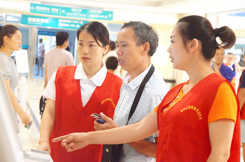 活動中,10余名黨員志愿者佩戴黨徽,穿著統(tǒng)一的志愿者服裝,分散在醫(yī)院門診的各個樓層,為來院就診的病人提供咨詢、導診等服務,同時指導病人進行自助查詢、自助取藥、自助打印化驗單等,為病人簡化看病流程。永州市中心醫(yī)院黨員志愿者用實際行動踐行著“走前頭、當先鋒、作表率”的黨員形象,贏得了現(xiàn)場群眾的贊許。